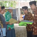 Kepala SMP islam Andalusia Kebasen, Drs H Dayono MM memberikan penghargaan simbolis kepada siswa berprestasi di sela-sela rapat Komite Sekolah - Haflah Akhirussanah Ponpes At Taujieh Al Islamy 2